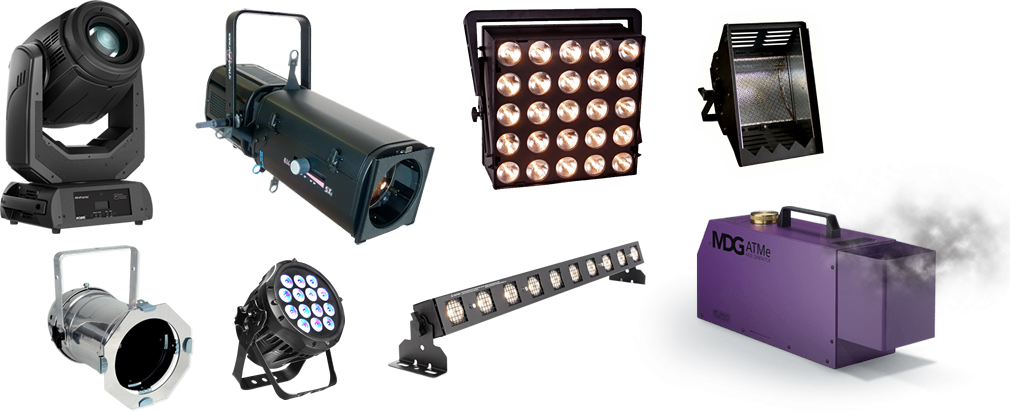 Les projecteurs de type “traditionnel”, parfois abréviés “trad” sont des projecteurs fixes dont le fonctionnement est assuré par une simple mise sous tension. On en trouve différents types: les PC, les découpes, les PAR, les blinders, les horiziodes ou cycliodes. Chacun de ces types de projecteurs ont des applications spécifiques que je ne vais pas décrire ici car ce serait trop long mais vous pouvez vous référer à cet article sur Audiofanzine qui décrit tout ça très bien.