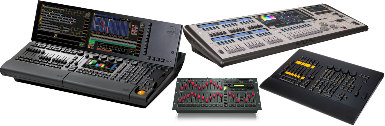 La console c'est le cockpit du pilote pour les lumières. C'est un appareil avec plein de boutons permettant de contrôler chaque élément se trouvant sur la scène, que ce soit des projecteurs ou autre. A C3 Lausanne, on utilise une console qui travaille de paire avec un ordinateur mais il existe une grande variété de consoles dont la plupart sont autonomes. Il y a aussi diverse marques avec chacune leur logique et philosophie, un peu comme PC VS Mac mais au final c'est la même méthode utilisée au niveau électronique pour contrôler les fixtures. A C3 Lausanne nous utilisons une console de la marque grandMA intitulée MA onPC command wing. Le terme “pupitre” est aussi parfois utilisé mais finalement assez peu à C3.