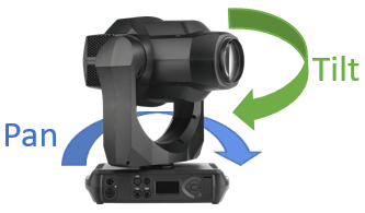Le “Pan” et le “Tilt” désigne les axes de rotations d'un projecteur dont l'orientation du faisceau est contrôlable. On appel généralement ce type de projecteurs des “moving heads” (= tête mobile), ou en français, des “lyres”.