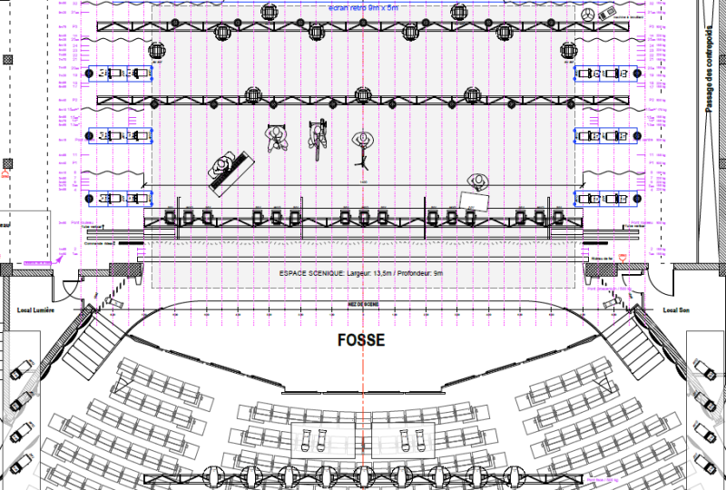 Il s'agit d'un plan, sur papier ou ordinateur qui indique la position, l'orientation et les réglages de chaque fixture utilisée dans un show. Ce plan est utilisé pour la mise en place des éléments au montage et pour l'adressage des fixtures (voir Fonctionnement du protocole DMX). A C3 Lausanne nous utilisons des plans de feu uniquement lors d'événements particuliers comme les cultes au théâtre.